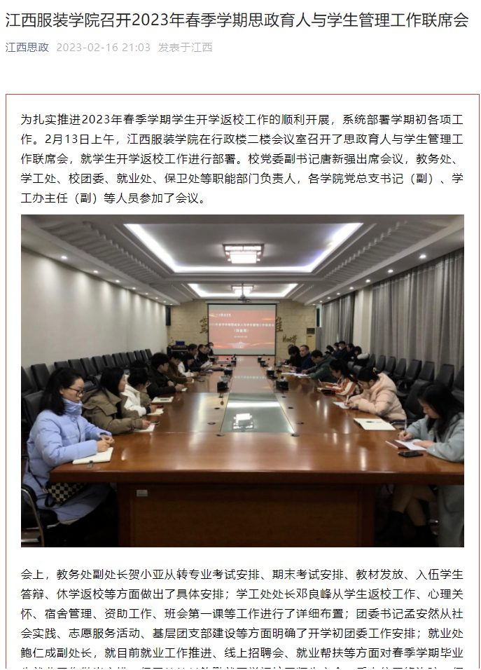 江西思政:江西服装学院召开2023年春季学期思政育人与学生管理工作联席会