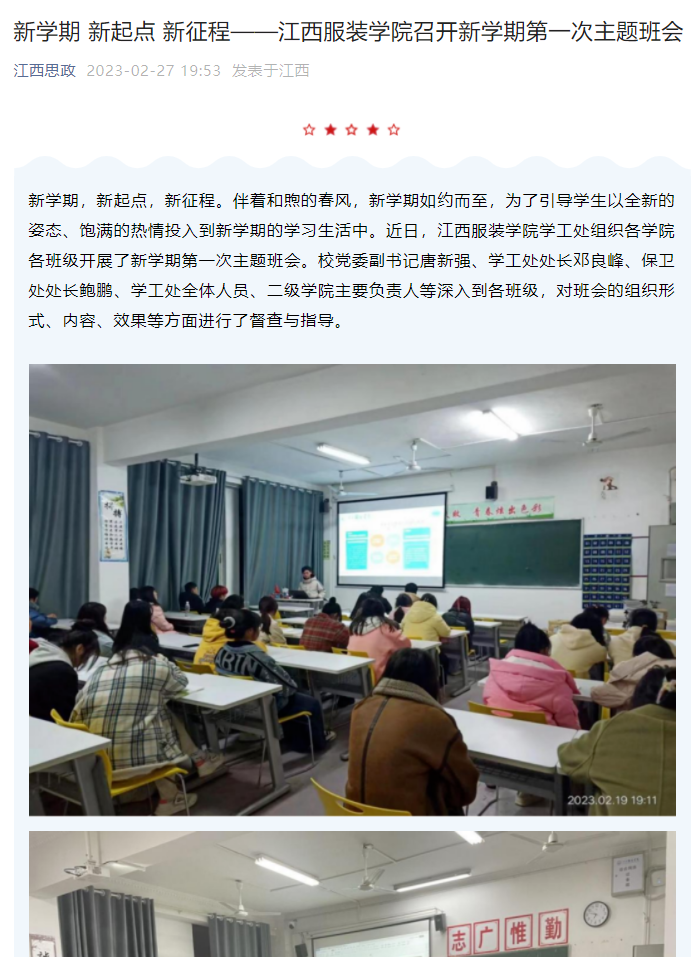 江西思政:新学期 新起点 新征程——江西服装学院召开新学期第一次主题班会