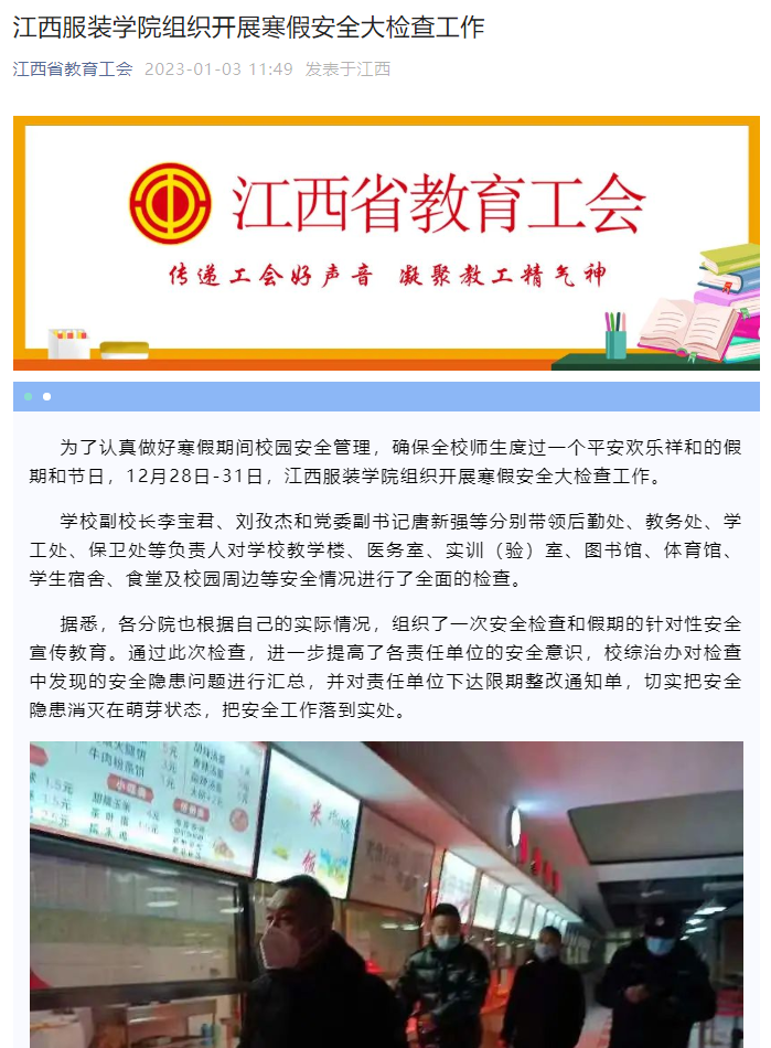 江西省教育工会:江西服装学院组织开展寒假安全大检查工作