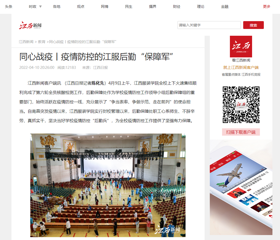 江西新闻:同心战疫丨疫情防控的江服后勤“保障军”