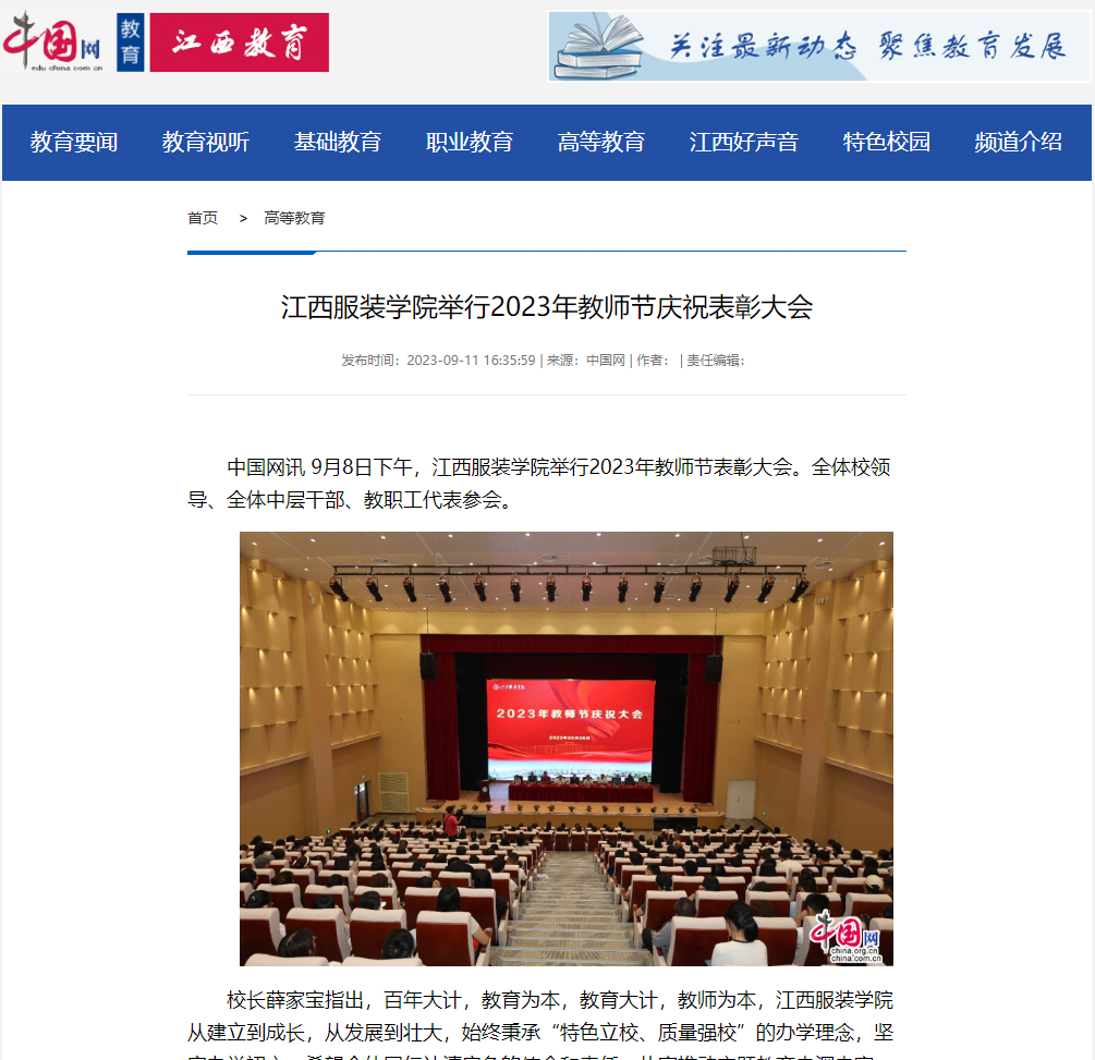 中国网:江西服装学院举行2023年教师节庆祝表彰大会