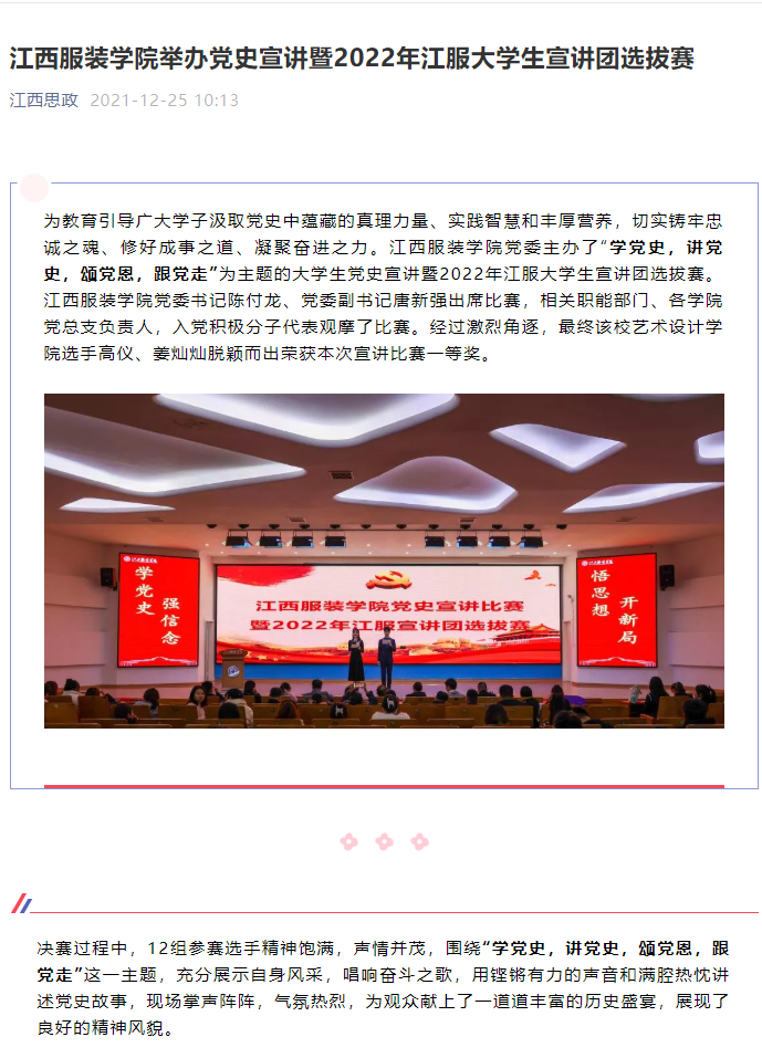 江西思政:江西服装学院举办党史宣讲暨2022年江服大学生宣讲团选拔赛