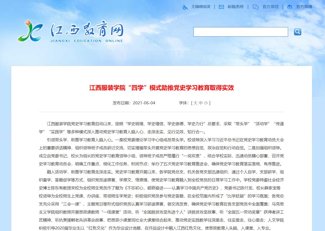 新闻链接:江西服装学院“四学”模式助推党史学习教育取得实效
