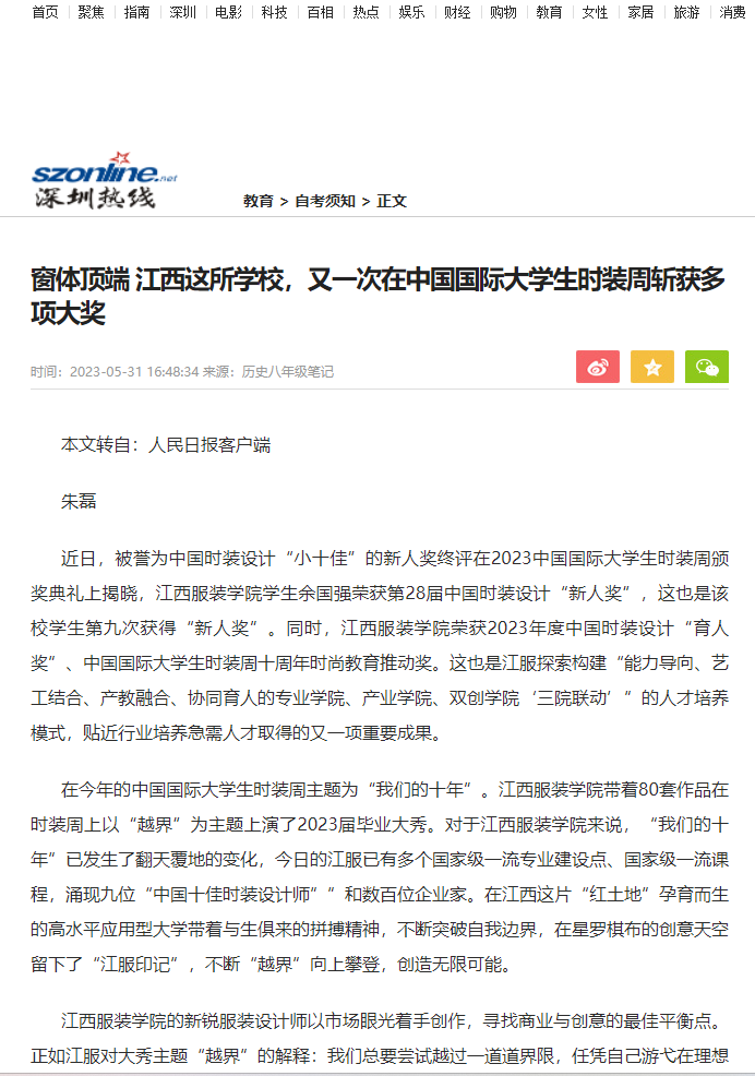 深圳热线:江西这所学校,又一次在中国国际大学生时装周斩获多项大奖