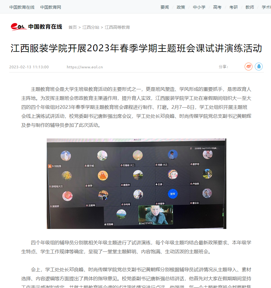 中国教育在线:江西服装学院开展2023年春季学期主题班会课试讲演练活动