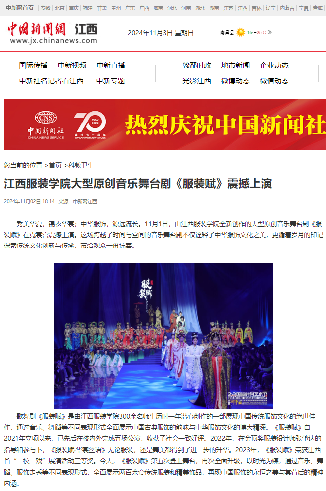 中国新闻网:江西服装学院大型原创音乐舞台剧《服装赋》震撼上演