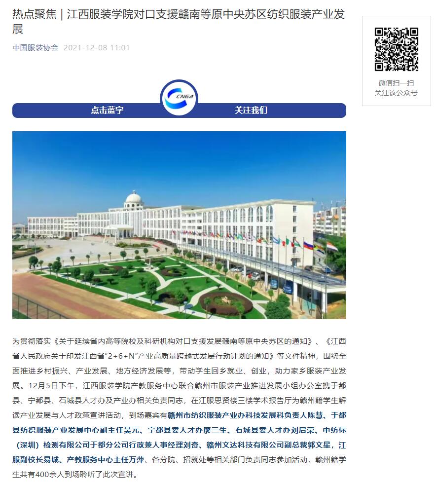 中国服装协会:热点聚焦 | 江西服装学院对口支援赣南等原中央苏区纺织服装产业发展