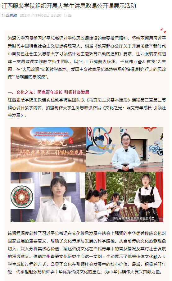 江西思政:江西服装学院组织开展大学生讲思政课公开课展示活动