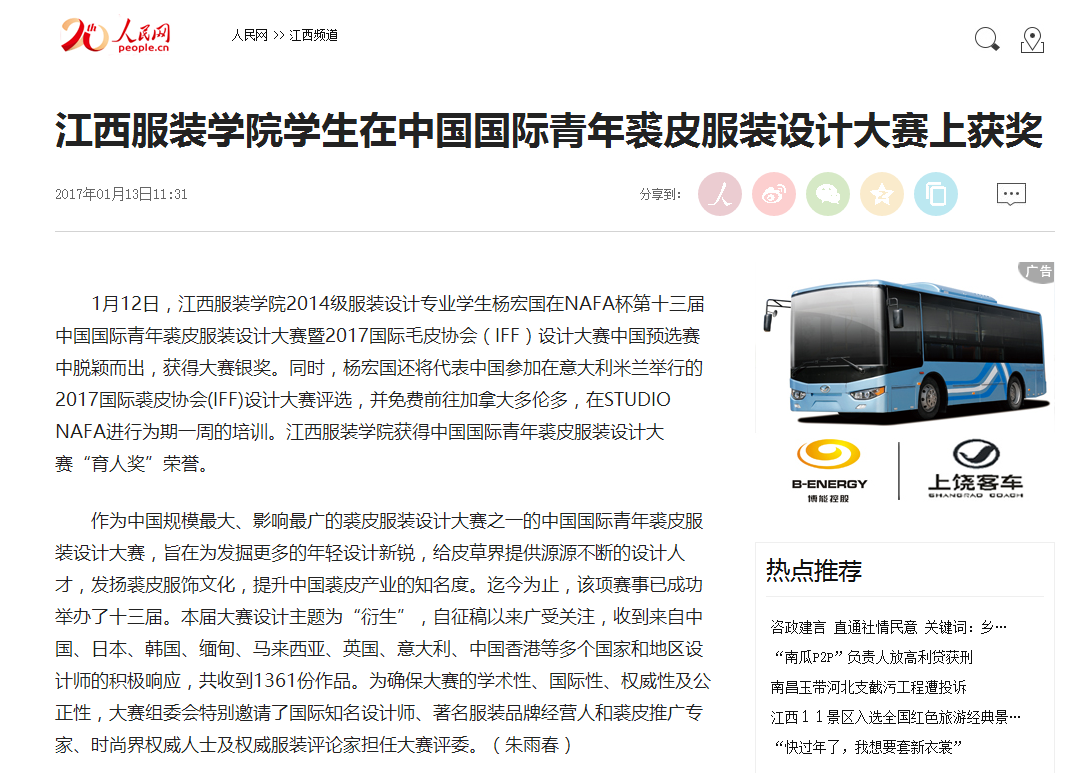 下一篇中国江西网:江西学子获中国国际皮裘服装设计大赛银奖