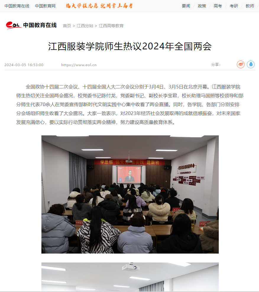 中国教育在线:江西服装学院师生热议2024年全国两会