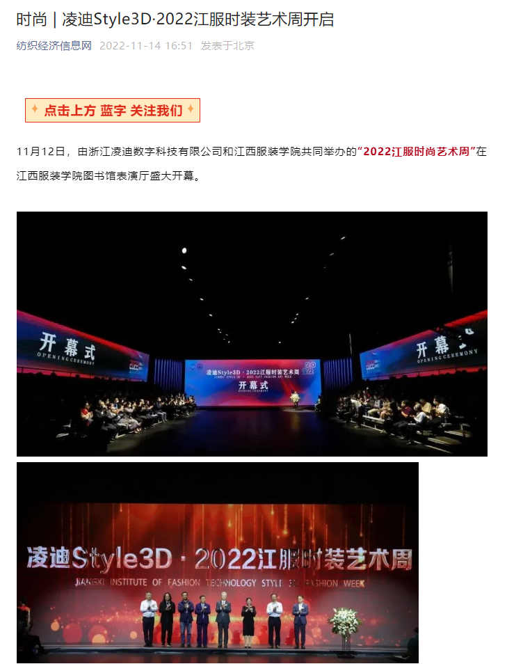 纺织经济信息网:时尚|凌迪Style3D·2022江服时装艺术周开启