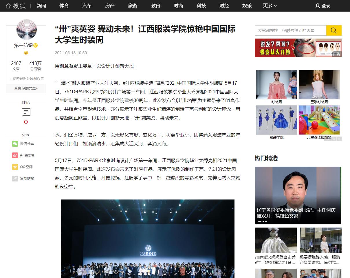新闻链接:搜狐网:“卅”爽英姿 舞动未来!江西服装学院惊艳中国国际大学生时装周
