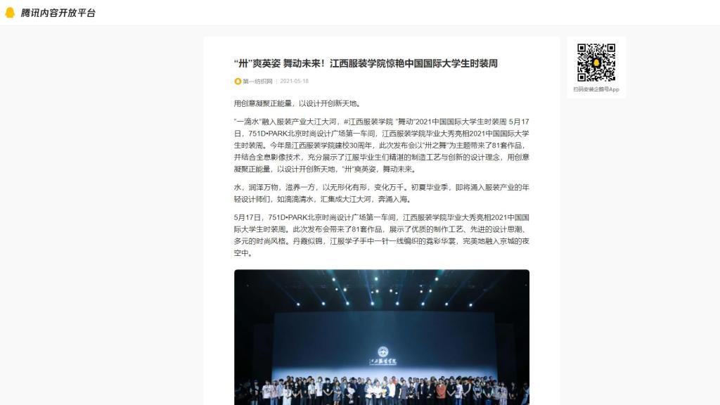 新闻链接:腾讯:“卅”爽英姿 舞动未来!江西服装学院惊艳中国国际大学生时装周