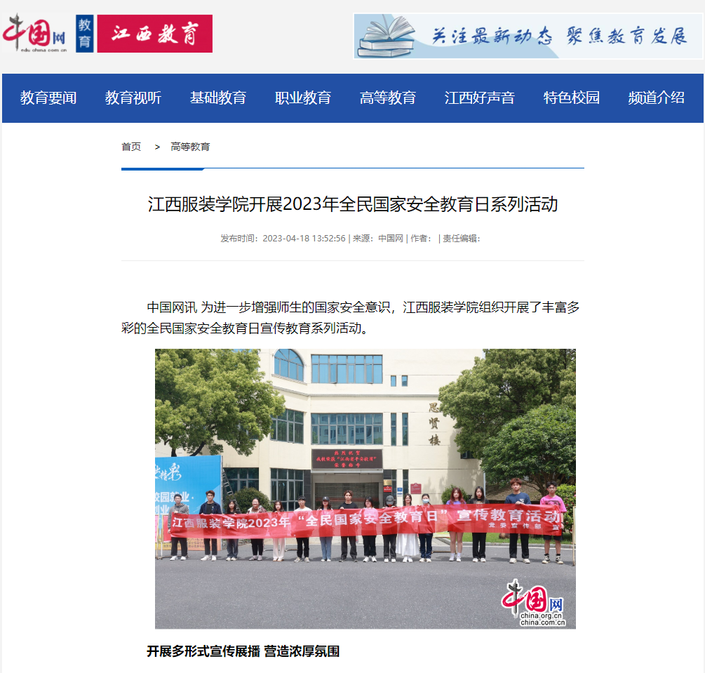 中国网:江西服装学院开展2023年全民国家安全教育日系列活动
