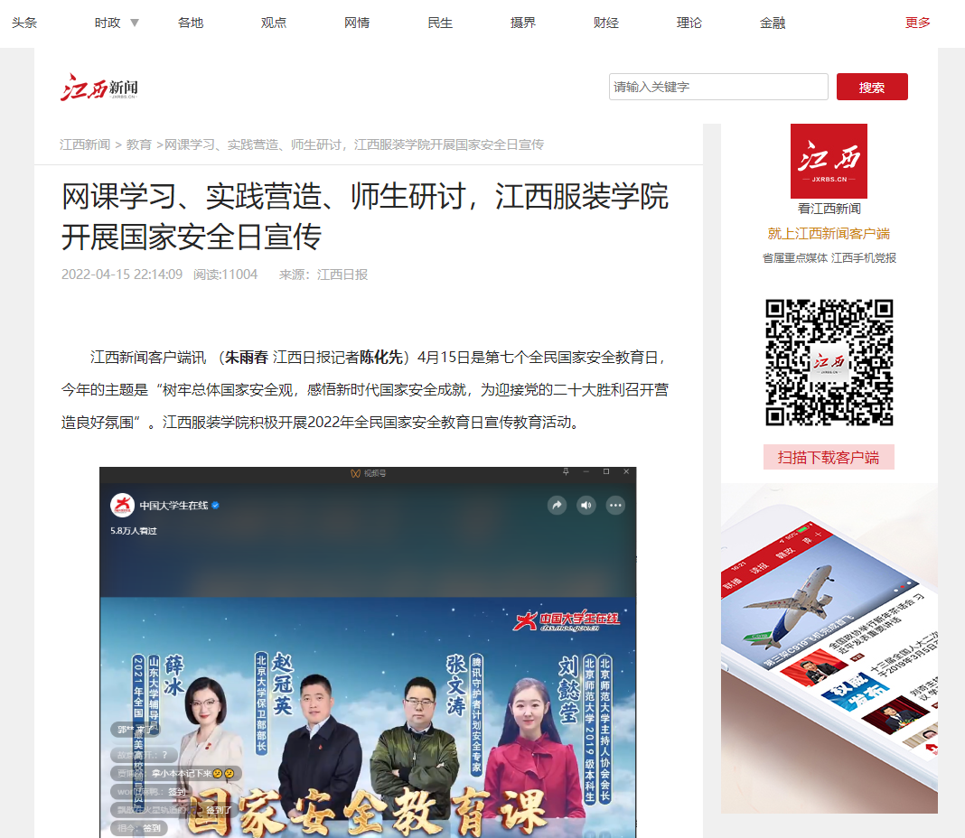 江西新闻:网课学习、实践营造、师生研讨,江西服装学院开展国家安全日宣传