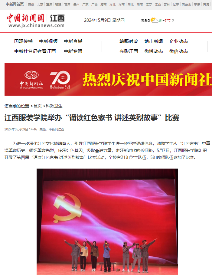 中国新闻网:江西服装学院举办“诵读红色家书 讲述英烈故事”比赛