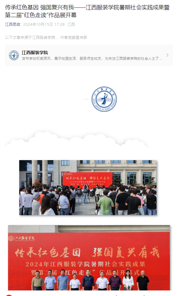 江西思政:传承红色基因 强国复兴有我——江西服装学院暑期社会实践成果暨第二届“红色走读”作品展开幕