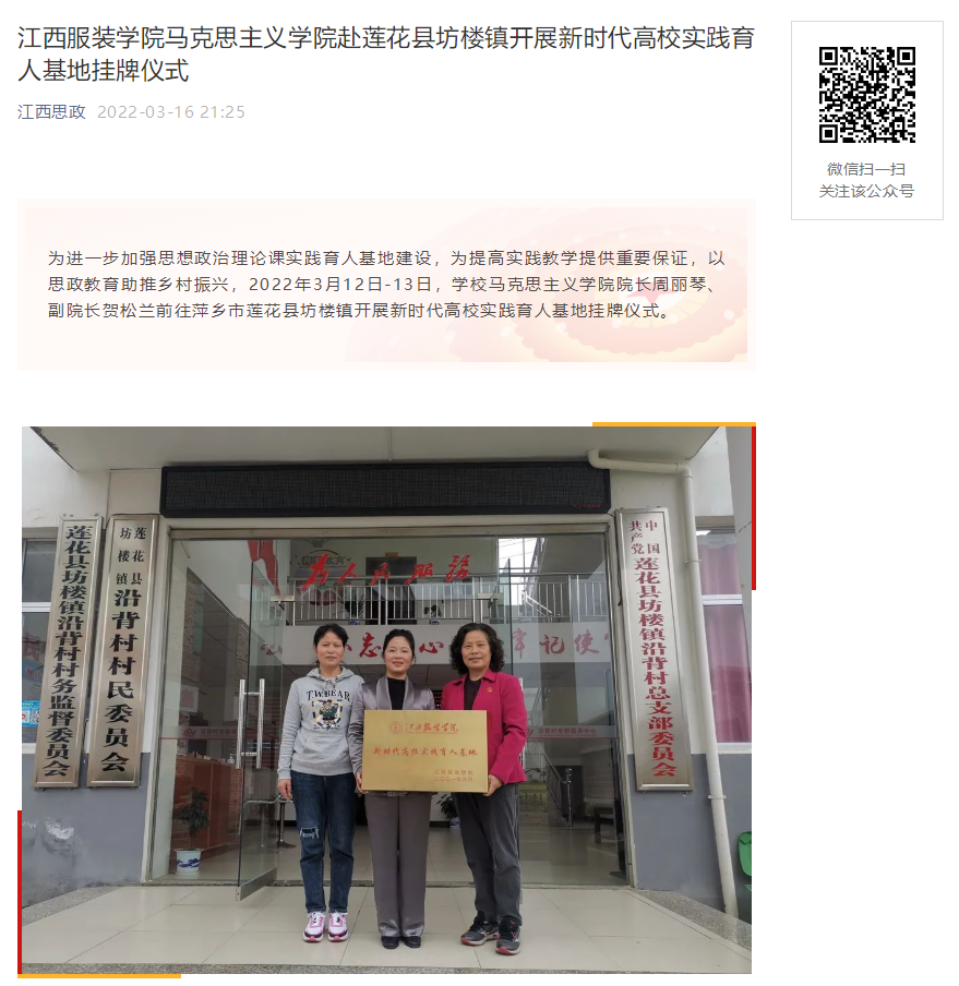 江西思政:江西服装学院马克思主义学院赴莲花县坊楼镇开展新时代高校实践育人基地挂牌仪式
