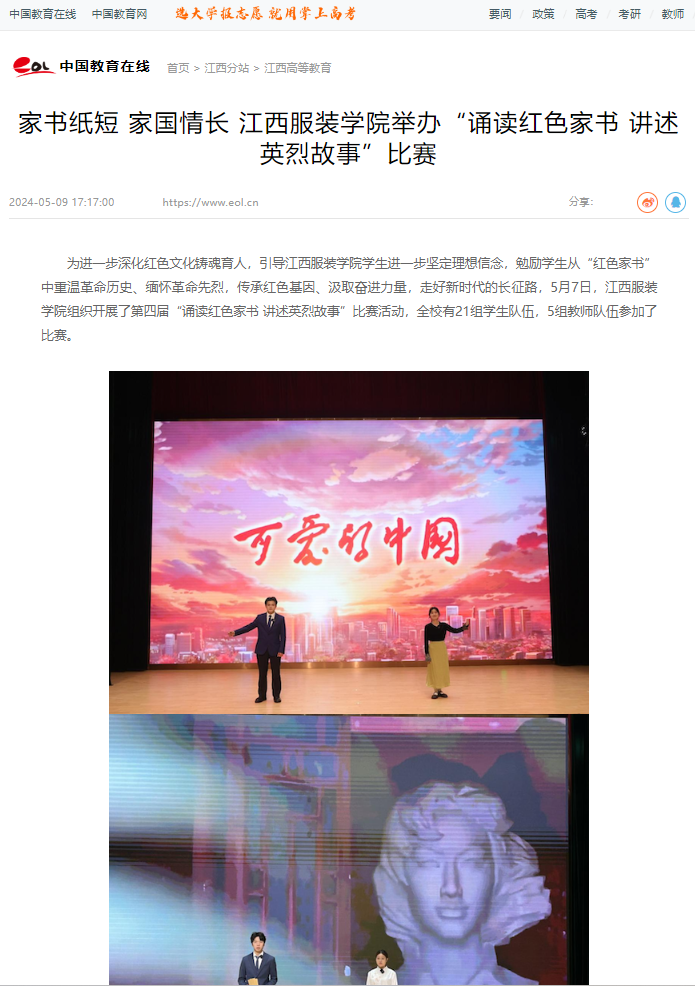 中国教育在线:家书纸短 家国情长 江西服装学院举办“诵读红色家书 讲述英烈故事”比赛
