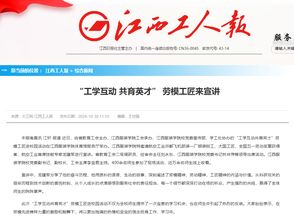 江西工人报:“工学互动 共育英才” 劳模工匠来宣讲