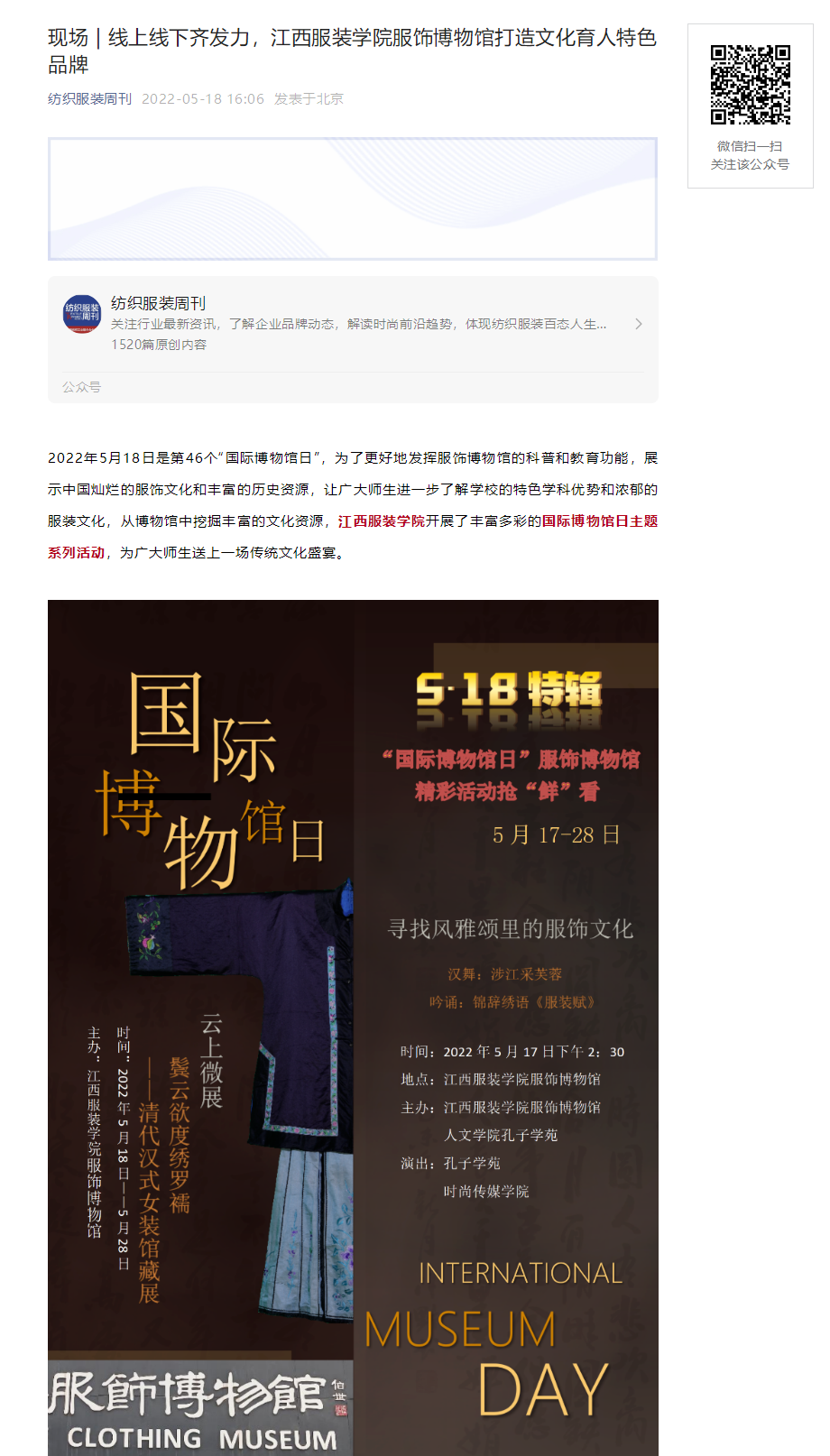 纺织服装周刊:现场 | 线上线下齐发力,江西服装学院服饰博物馆打造文化育人特色品牌