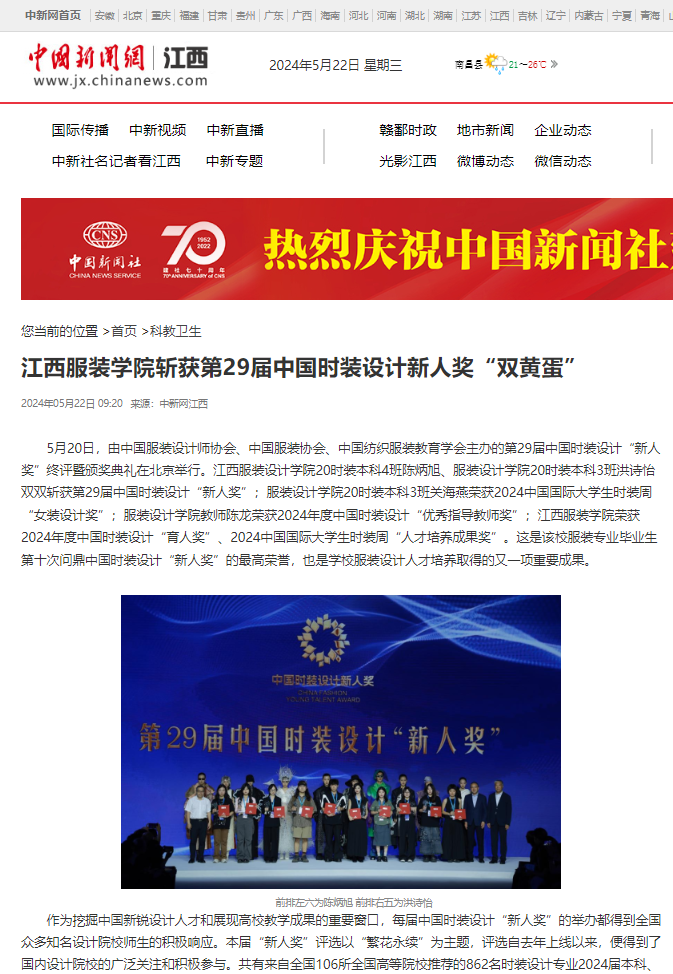 中国新闻网:江西服装学院斩获第29届中国时装设计新人奖“双黄蛋”