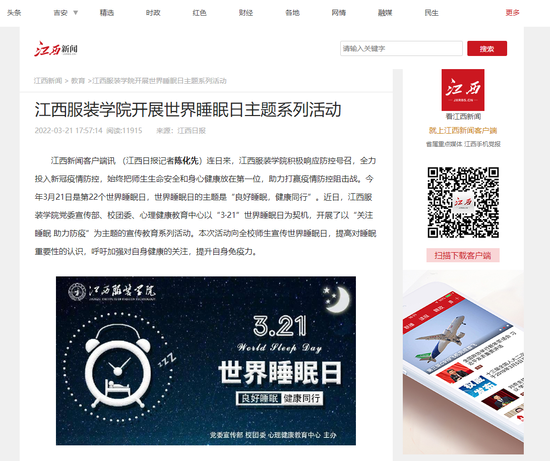 江西日报·江西新闻:江西服装学院开展世界睡眠日主题系列活动