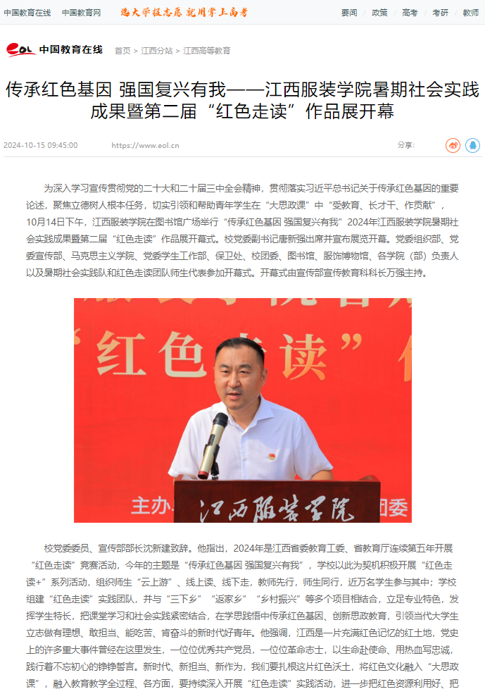 中国教育在线:传承红色基因 强国复兴有我——江西服装学院暑期社会实践成果暨第二届“红色走读”作品展开幕