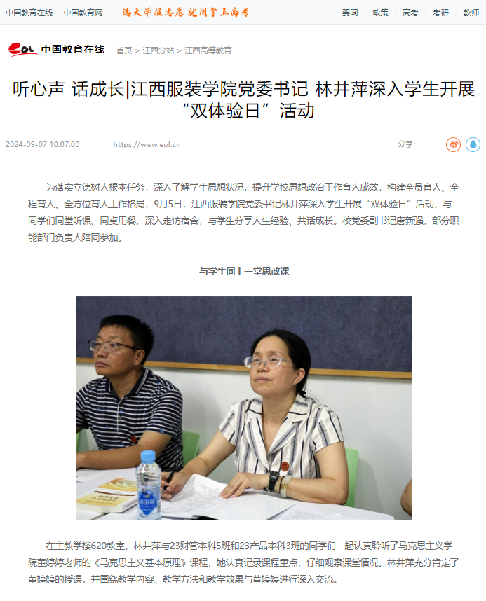 中国教育在线:听心声 话成长|江西服装学院党委书记林井萍深入学生开展“双体验日”活动