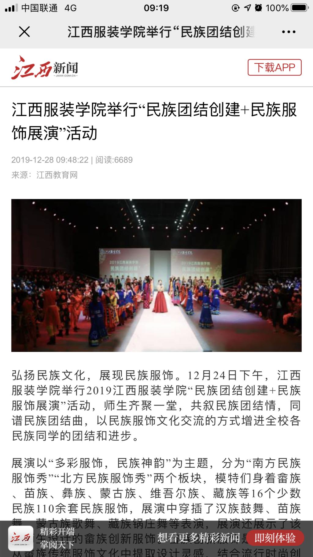 江西新闻对此进行了报道,以下为新闻链接:江西服装学院举行“民族团结创建+民族服饰展演”活动