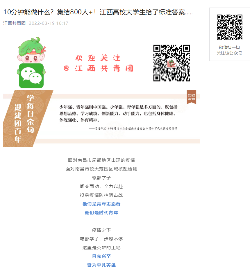 江西共青团:10分钟能做什么?集结800人+!江西高校大学生给了标准答案.....