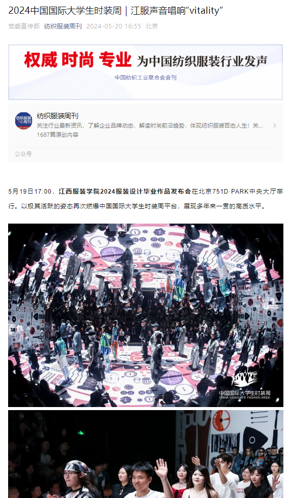 纺织服装周刊:2024中国国际大学生时装周|江服声音唱响“vitality”