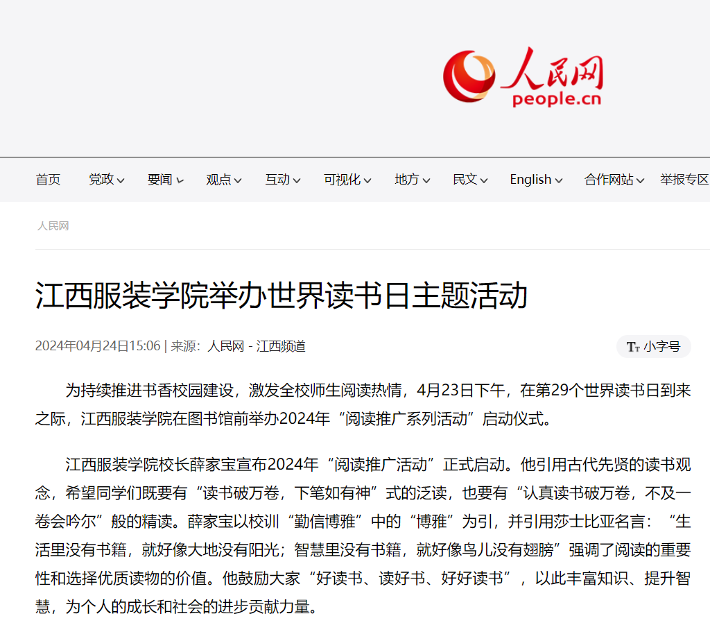 下一篇中国网:江西服装学院开展“浸润书香砺初心 感恩奋进担使命”世界读书日主题活动