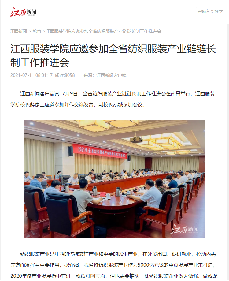 新闻链接:江西服装学院应邀参加全省纺织服装产业链链长制工作推进会