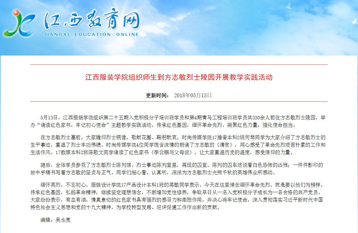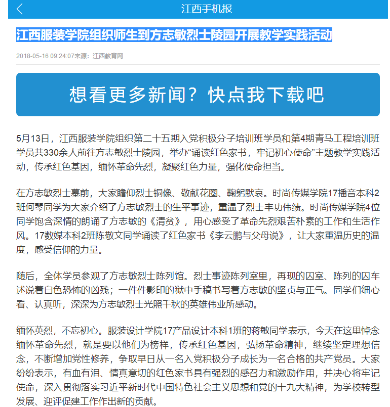 上一篇江西教育网、江西手机报:江西服装学院举办“诵读红色家书,牢记时代使命”诵读比赛