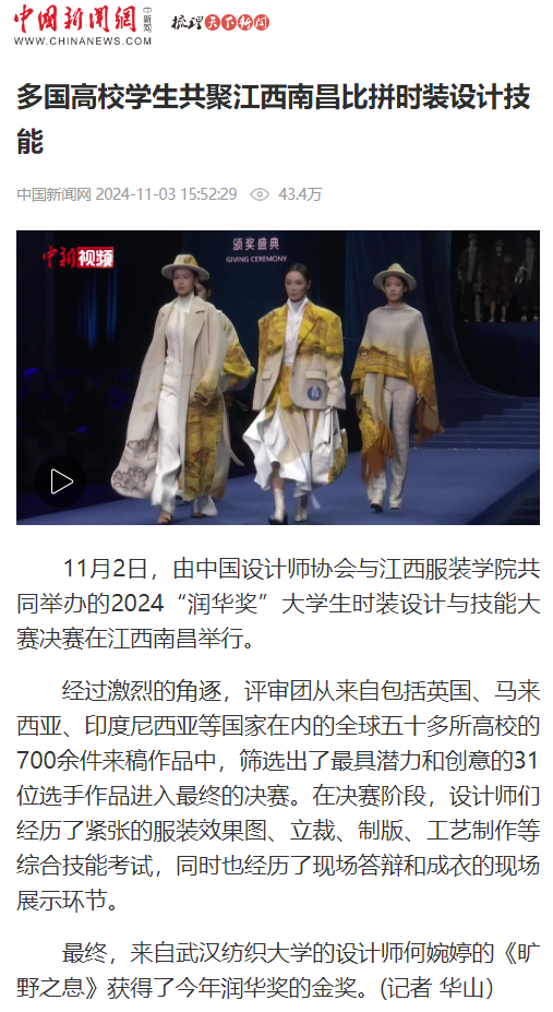 中国新闻网:多国高校学生共聚江西南昌比拼时装设计技能