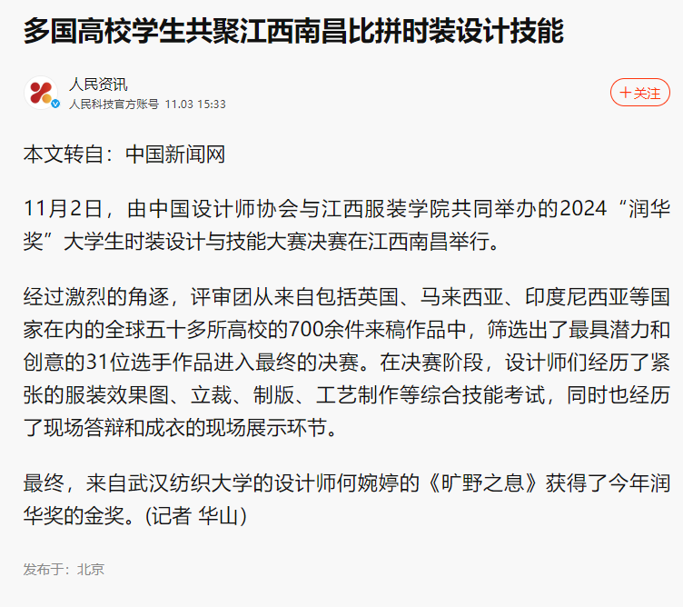 人民资讯:多国高校学生共聚江西南昌比拼时装设计技能