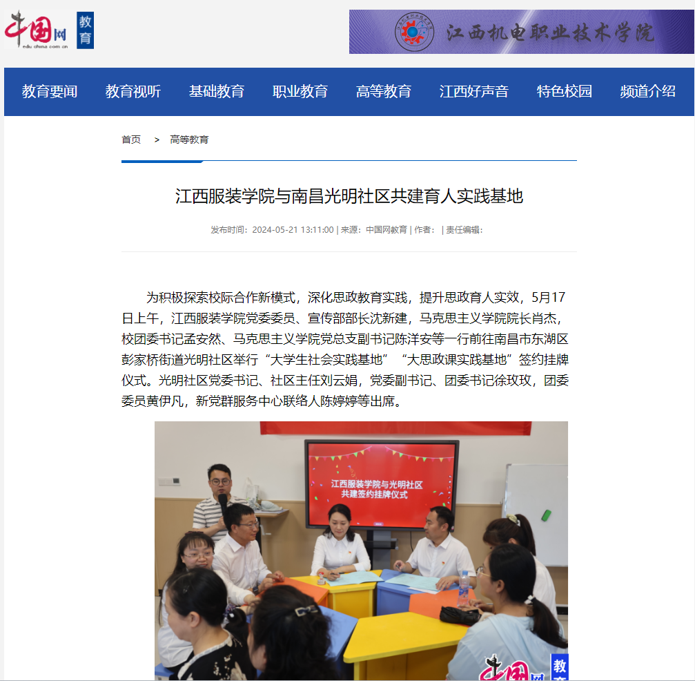 中国网:江西服装学院与南昌光明社区共建育人实践基地