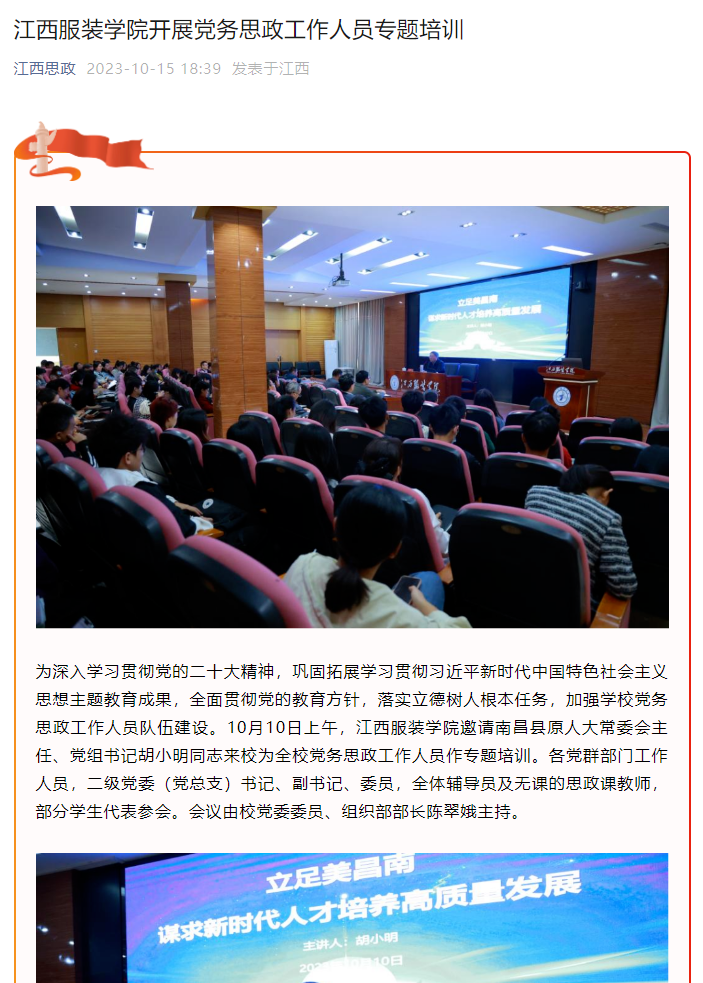 江西思政:江西服装学院开展党务思政工作人员专题培训