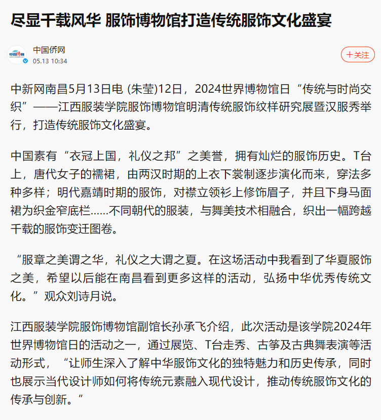 中国侨网:尽显千载风华 服饰博物馆打造传统服饰文化盛宴