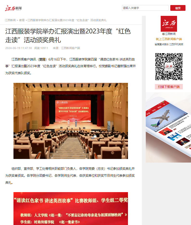 江西日报·江西新闻网:江西服装学院举办汇报演出暨2023年度“红色走读”活动颁奖典礼