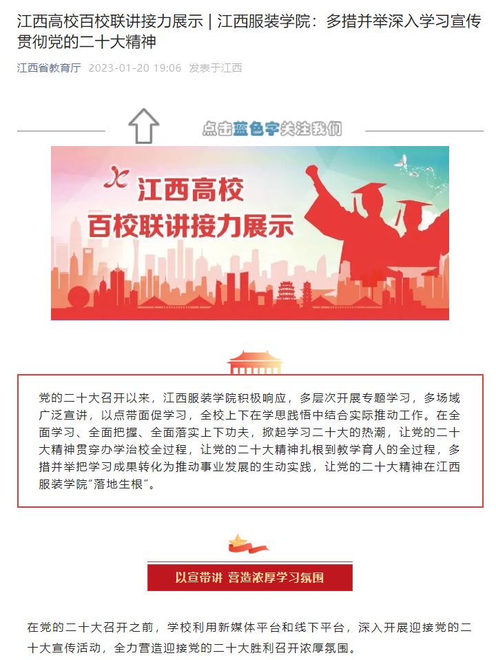 江西省教育厅:江西高校百校联讲接力展示 | 江西服装学院:多措并举深入学习宣传贯彻党的二十大精神
