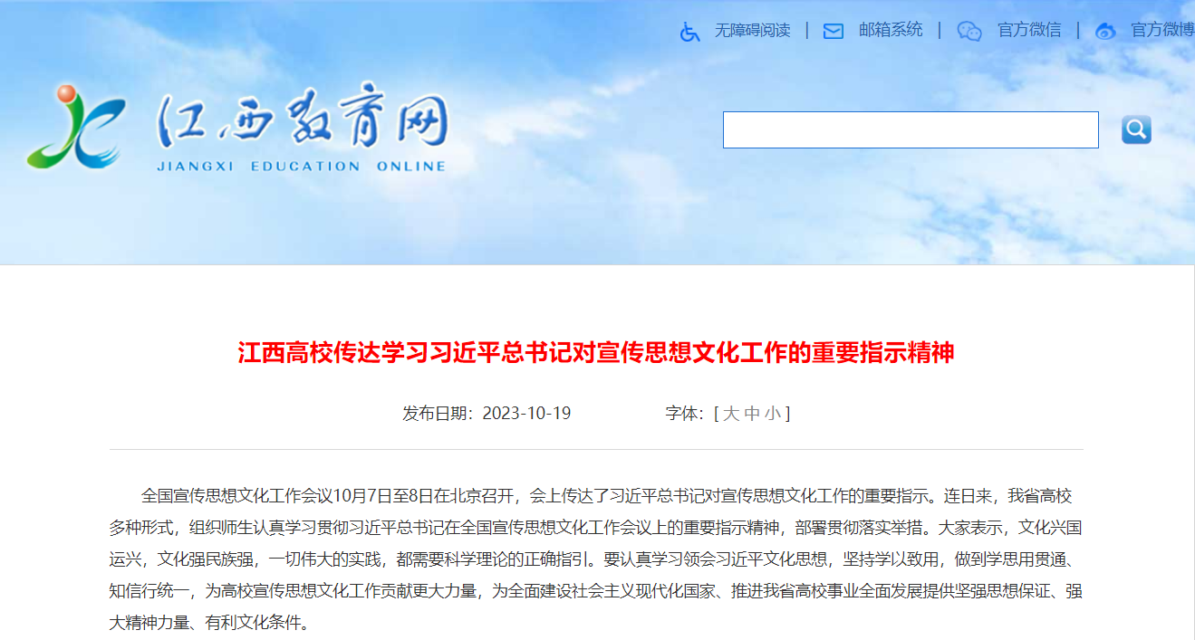 江西省教育厅官网:报道江西服装学院传达学习习近平总书记对宣传思想文化工作的重要指示精神