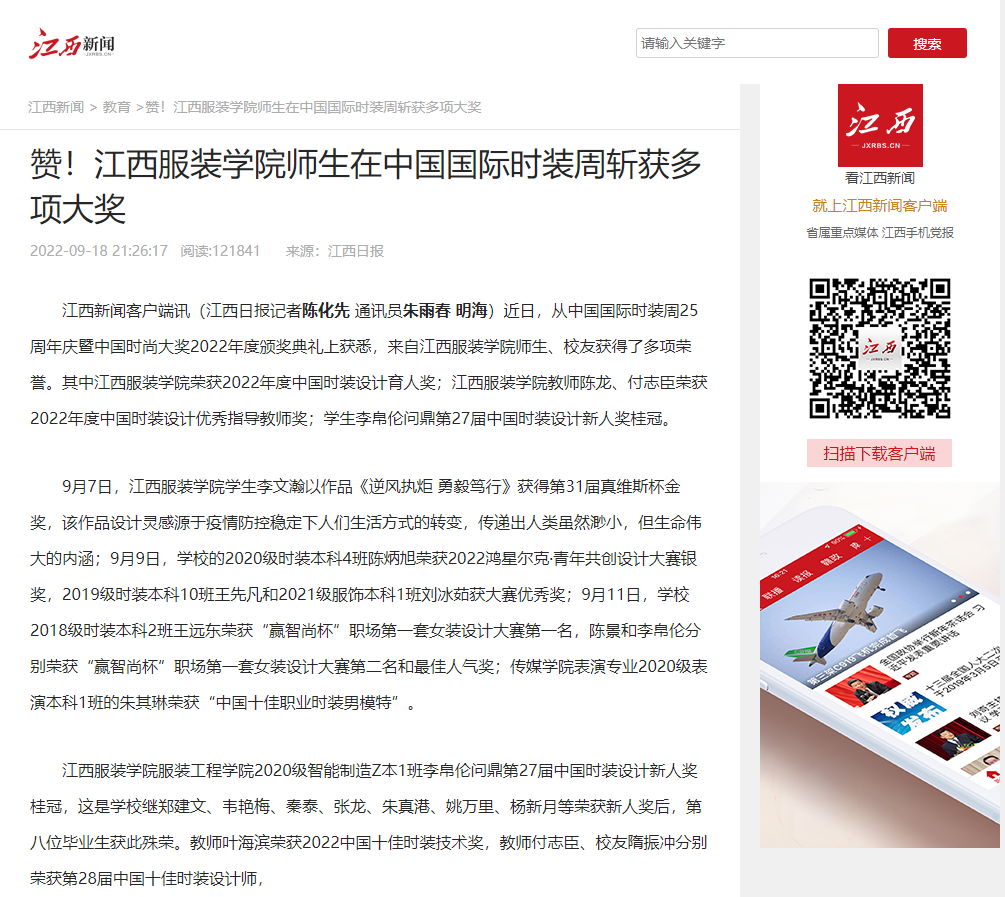 江西新闻·江西日报:赞!江西服装学院师生在中国国际时装周斩获多项大奖