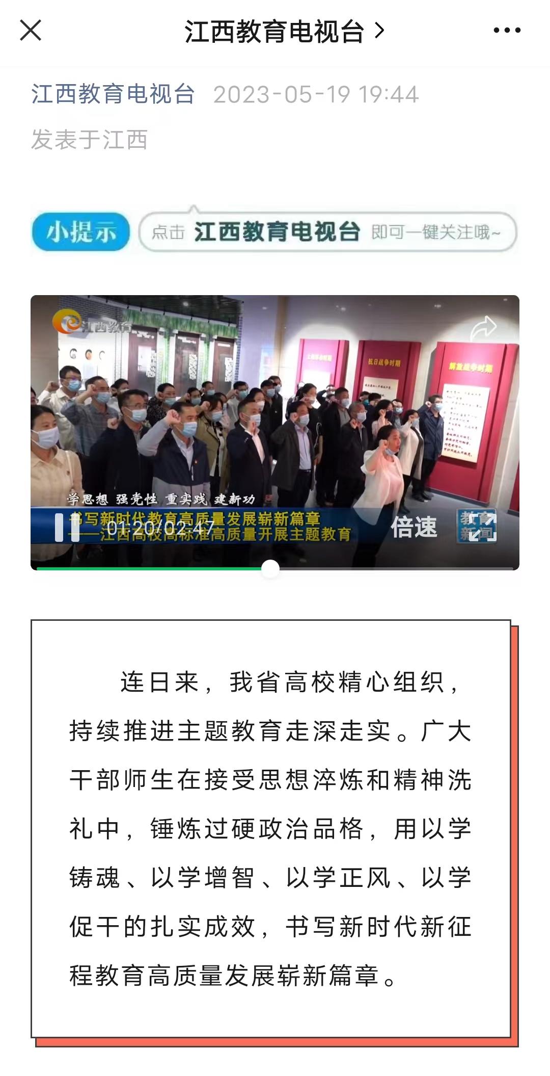 新闻链接:江西教育电视台:报道江西服装学院高标准高质量开展主题教育