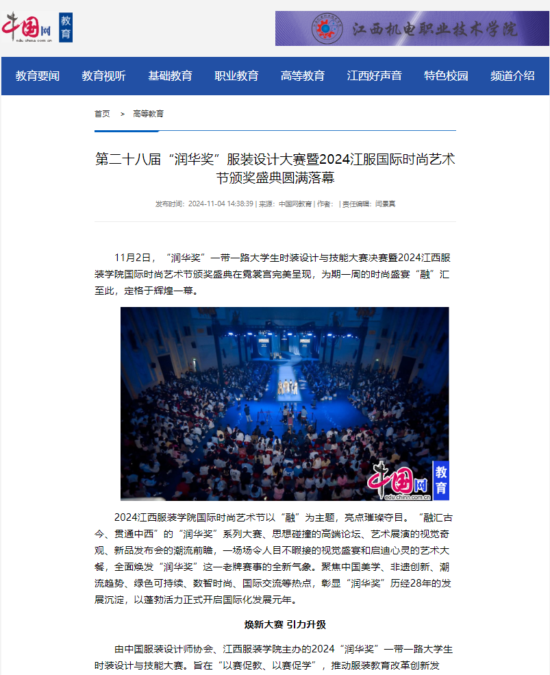 中国网:第二十八届“润华奖”服装设计大赛暨2024江服国际时尚艺术节颁奖盛典圆满落幕