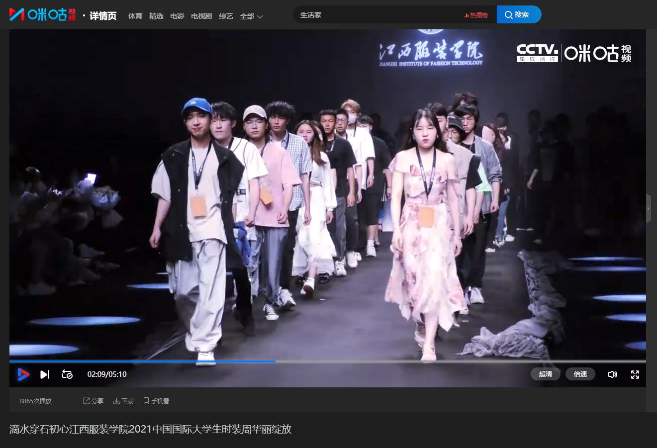 新闻链接:咪咕视频:滴水穿石初心江西服装学院2021中国国际大学生时装周华丽绽放