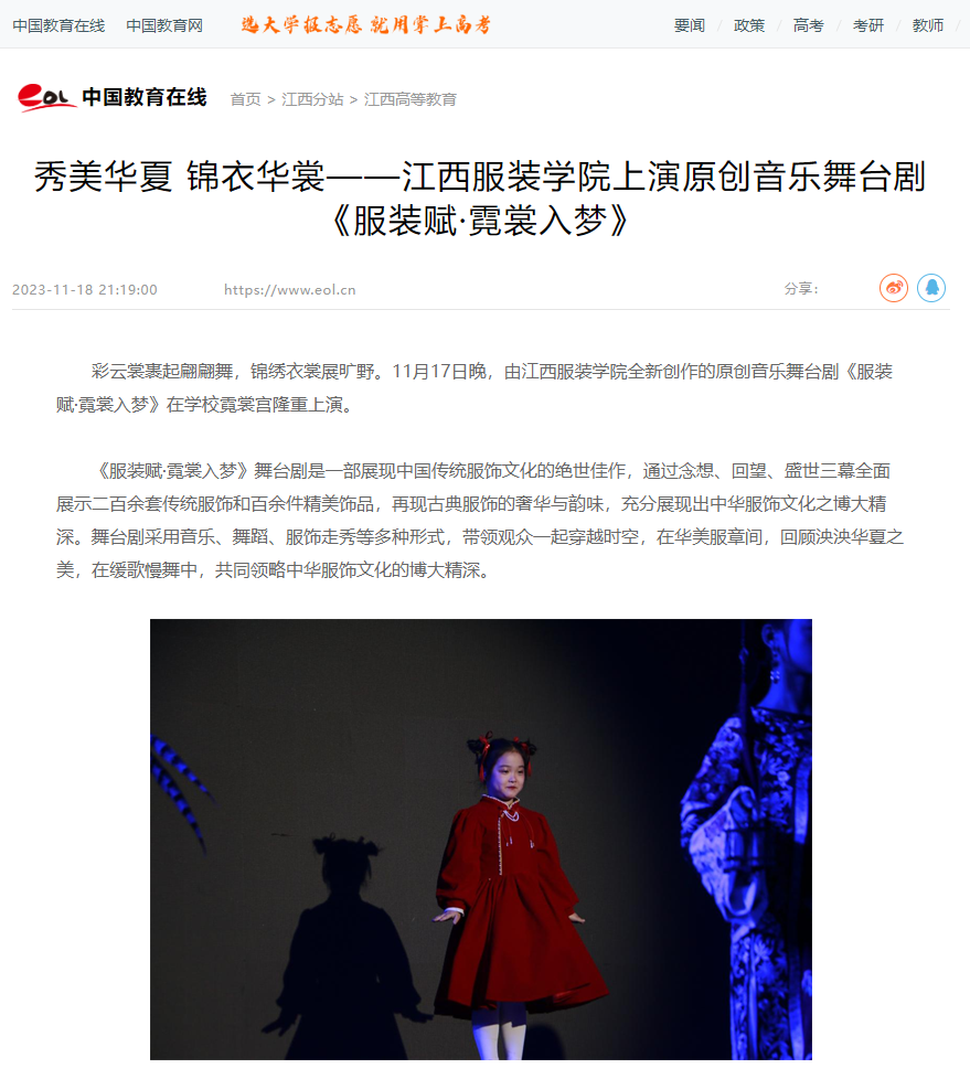 中国教育在线:秀美华夏 锦衣华裳——江西服装学院上演原创音乐舞台剧《服装赋·霓裳入梦》