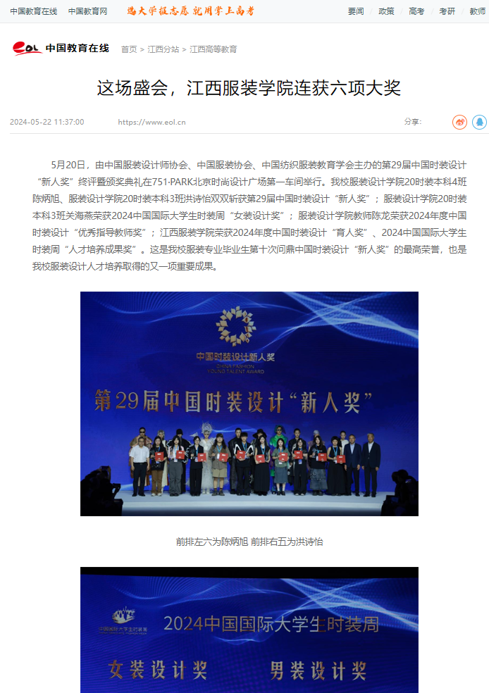 中国教育在线:这场盛会,江西服装学院连获六项大奖