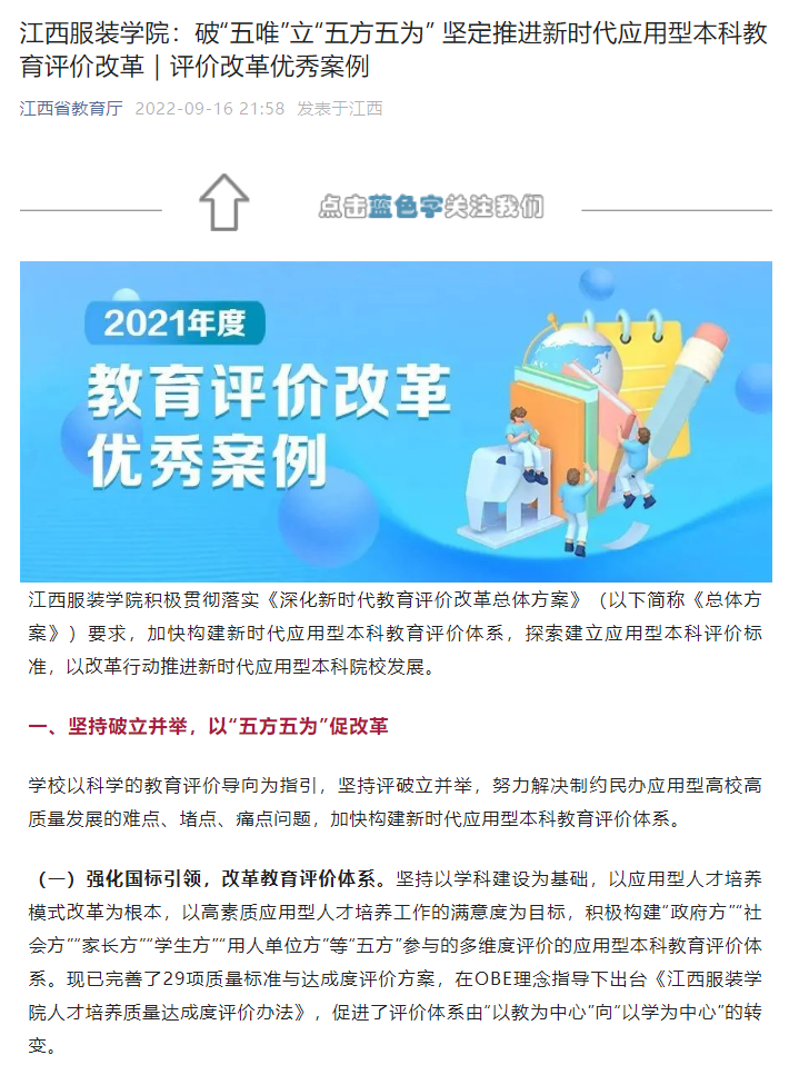 江西省教育厅:江西服装学院:破“五唯”立“五方五为” 坚定推进新时代应用型本科教育评价改革|评价改革优秀案例
